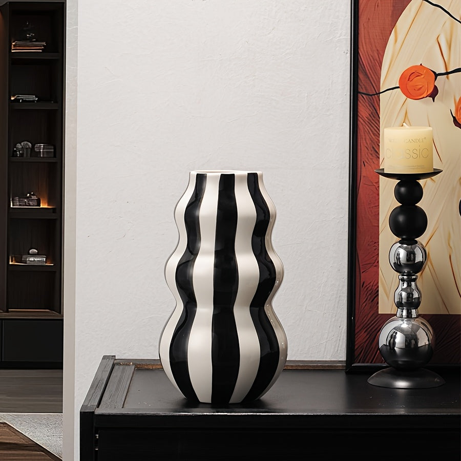 Bold lines meet clean design in the Modern Striped Ceramic Vase — a striking accent piece that brings effortless style to any space. With its crisp stripes and contemporary silhouette, this vase adds visual interest while maintaining a minimalist edge.